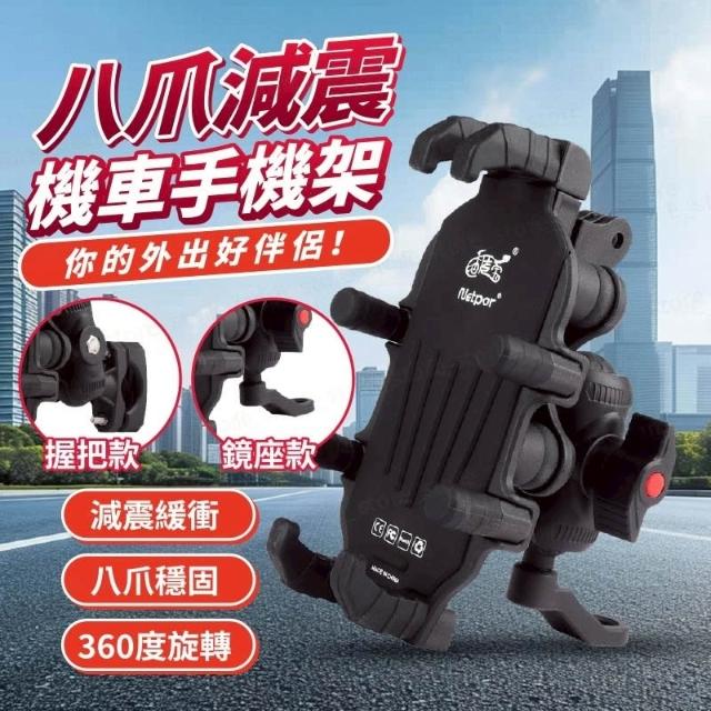 八爪減震 機車手機架|單手操作|360°旋轉|穩固防震|握把款/鏡座款