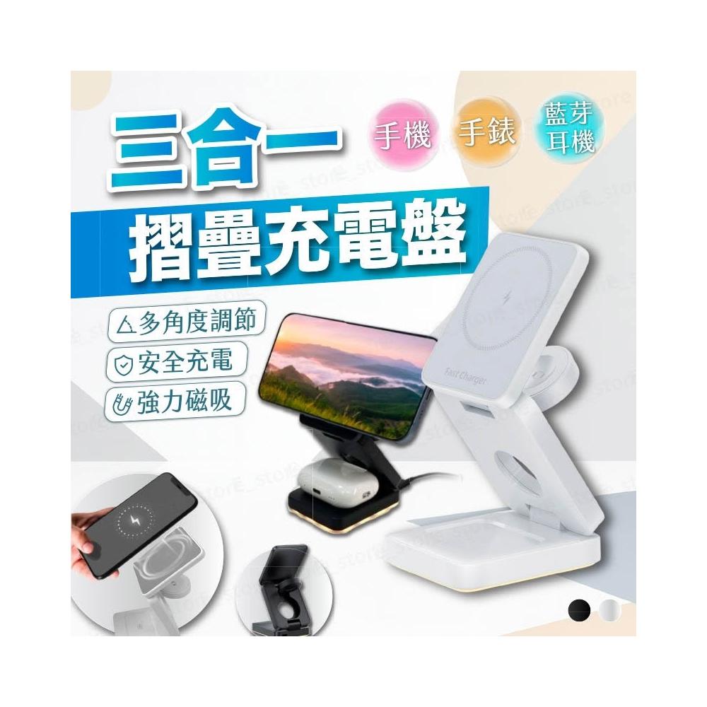 磁吸快充 手機/手錶/耳機三合一 22W 磁吸支架 無線充電座 夜燈功能