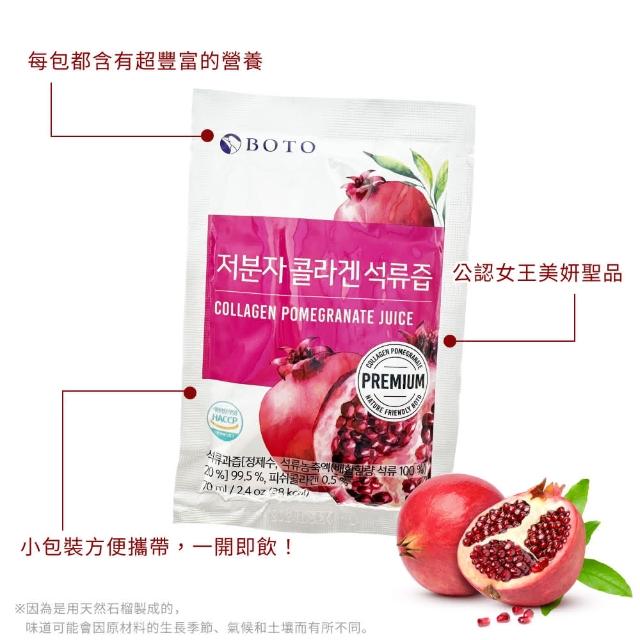 韓國BOTO膠原蛋白紅石榴汁 70mlx100入/箱(低分子 膠原蛋白 石榴汁 石榴濃縮果汁 韓國 濃縮石榴汁)