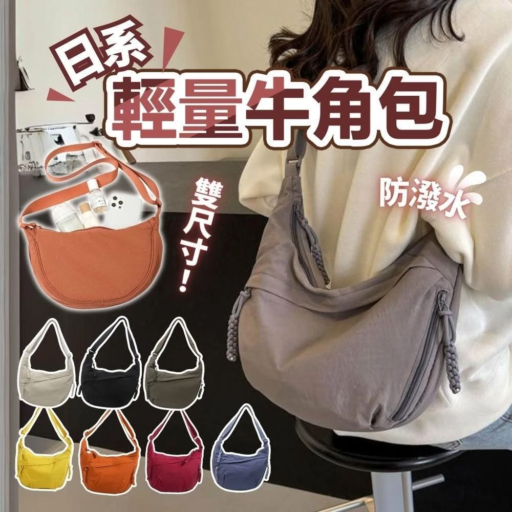 日系牛角包(斜背包 單肩包 帆布包 弧形半月包 餃子包 斜跨包 月牙包 側背包 大容量包包 太空包)