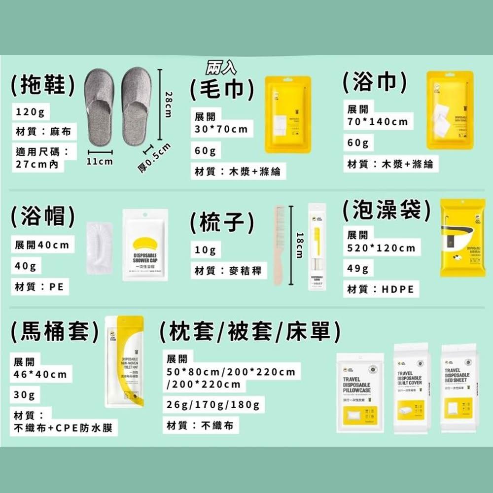 一次性用品(旅行備品 出差用品 拋棄式用品 一次性浴帽 拋棄式毛巾 浴巾 梳子 盥洗用品 飯店備品)