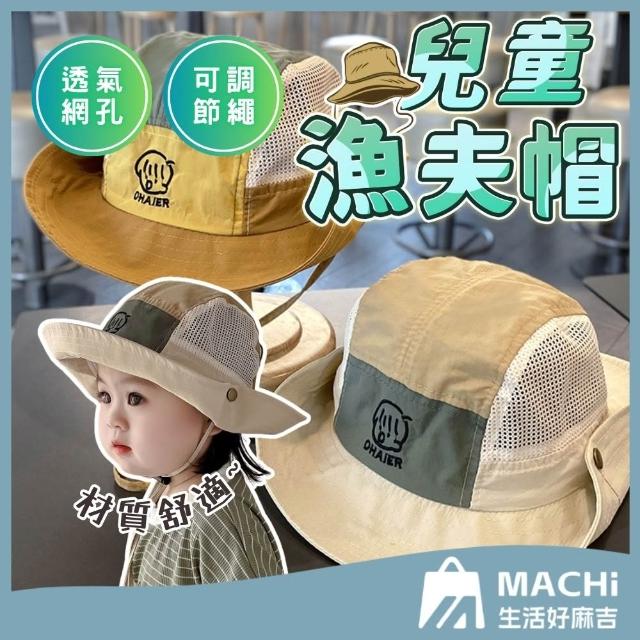 透氣網孔+頭圍可調兒童漁夫帽(兒童遮陽帽 兒童帽子 男女童漁夫帽 兒童防曬帽 遮陽帽 漁夫帽)