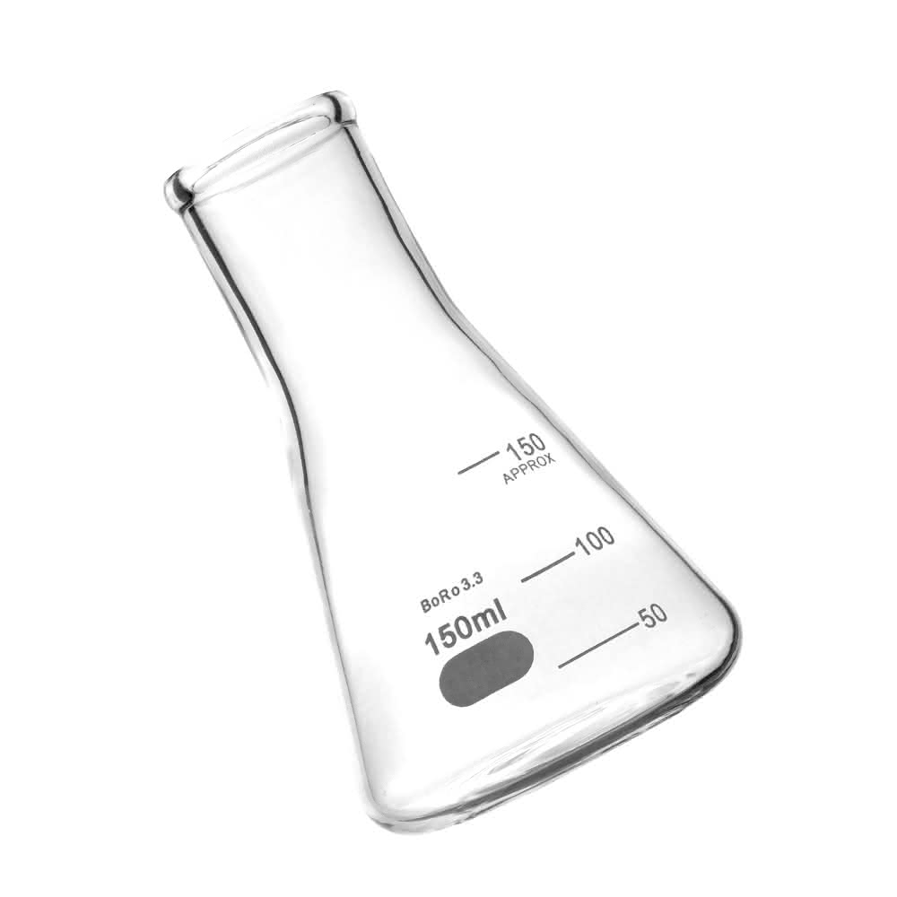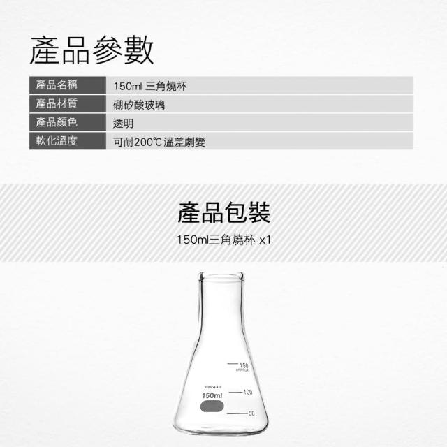 SMARTHO錐形玻璃瓶 150ml 三角燒杯 量杯玻璃 耐熱量杯 玻璃杯 實驗器材 5-GCD150(刻度杯 錐形瓶 實驗室)