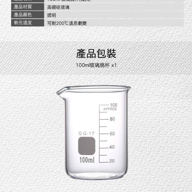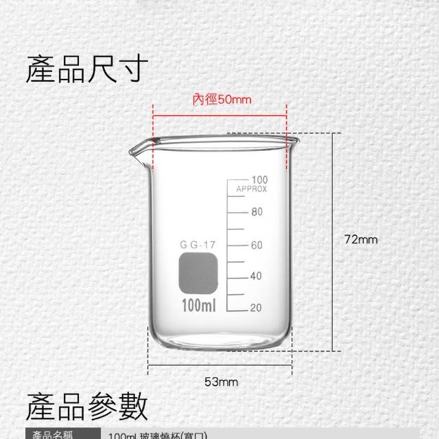 玻璃燒杯 100ml 寬口燒杯 格氏燒杯 玻璃容器 實驗器材 5-GCL100(耐高溫 刻度杯 量筒)
