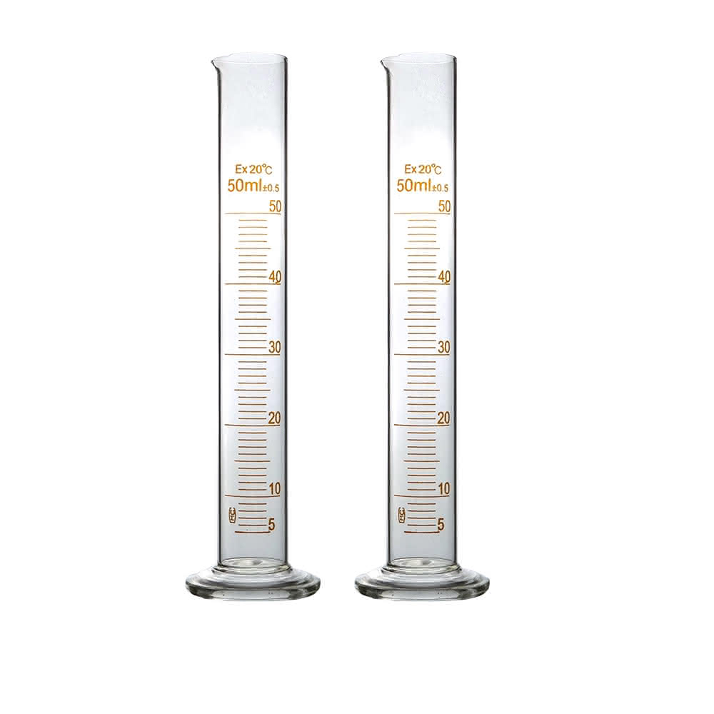 SMARTHO具嘴刻度量筒 50ml 玻璃刻度量筒 刻度量杯 實驗用品 玻璃量杯 5-GPT50(刻度清晰 樣本液體)