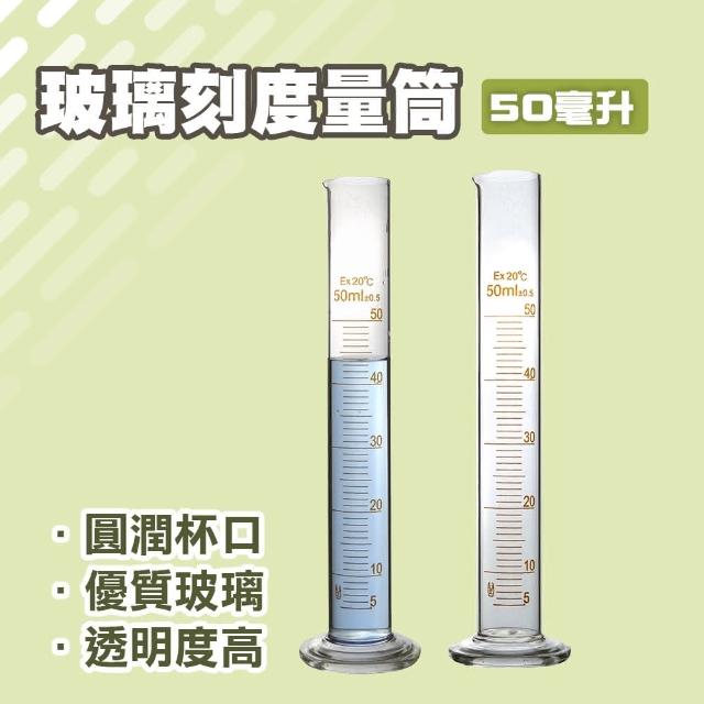 SMARTHO具嘴刻度量筒 50ml 玻璃刻度量筒 刻度量杯 實驗用品 玻璃量杯 5-GPT50(刻度清晰 樣本液體)