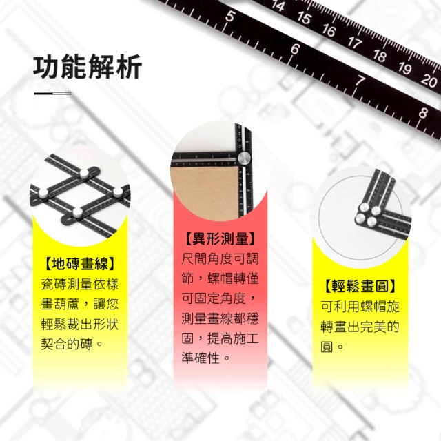 SMARTHO角尺 木工尺 萬用角度尺 四角尺 摺疊尺 折尺角尺 測量器 5-FFRB(活動尺 定位尺 四邊折)