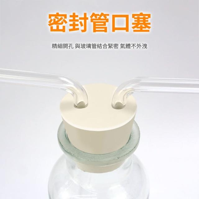- 管口橡膠塞開孔精密,氣體不外洩