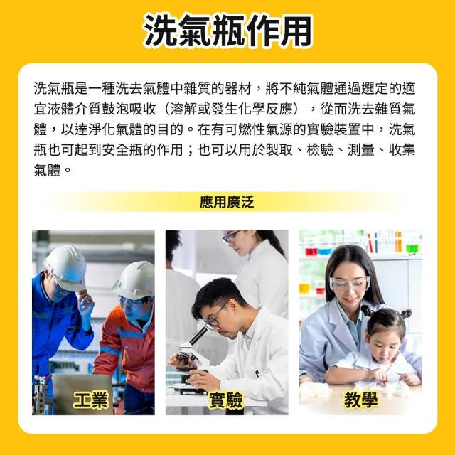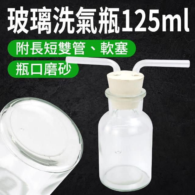 SMARTHO 萬能瓶 125ml 玻璃洗氣瓶 氣體洗滌瓶 彎曲玻璃管 配雙孔橡膠塞 5-GWB125(過濾瓶 抽氣瓶 燒杯)