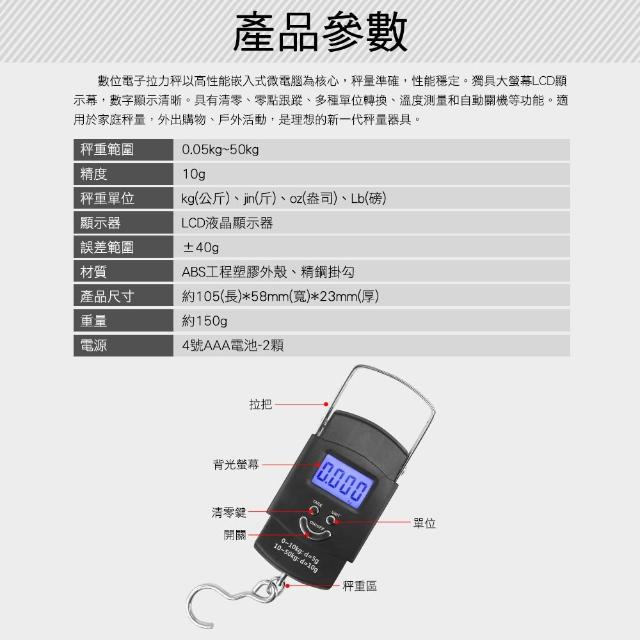商用家用迷你 50公斤 數位電子拉力秤 攜帶式吊秤 多功能手提電子秤 拉力計 郵局包裹 鉤子秤 掛鉤秤 5-RH50+