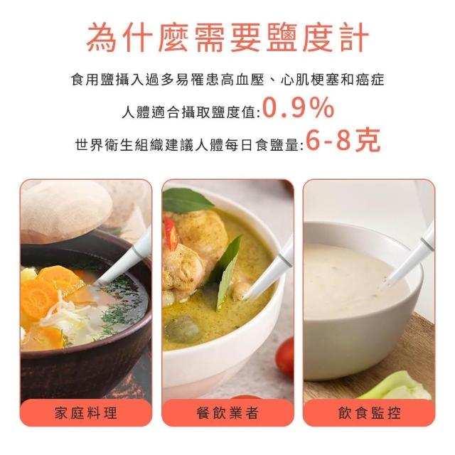 食品鹽度計 測鹽機 鹹味測量 湯頭鹹度 食品溫度計 0-5% 廚房神器 減鹽生活 適用家庭菜湯湯麵類 5-DSM100