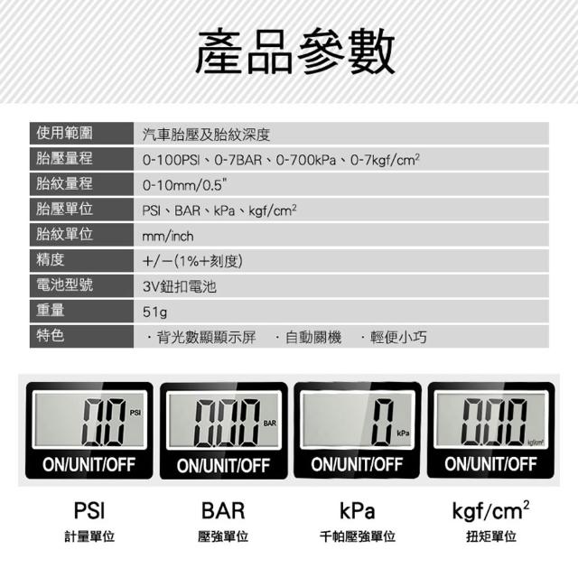 胎壓胎紋儀 胎紋深度計 輪胎檢測器 數位式胎壓胎紋儀 汽車胎壓量測 胎紋深度量測 胎壓計 胎壓監測器 5-TG21
