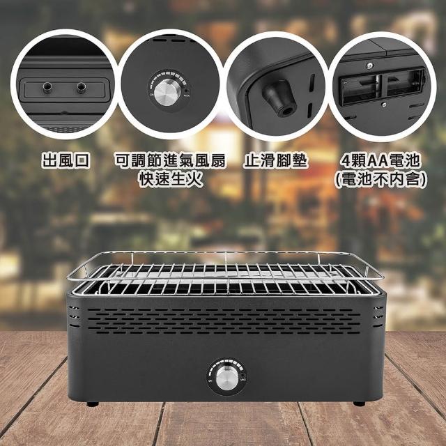 Meateor無煙炭烤爐 免插電 內建可調節風扇 快速生火 獨特烤網擋盤設計(中秋、烤肉必備)