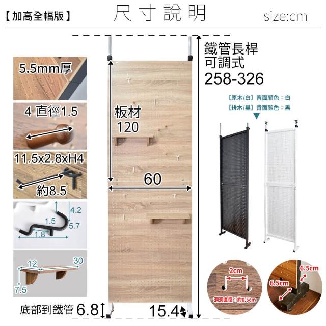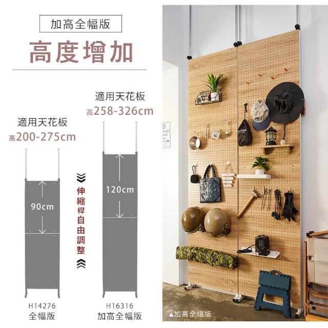 凱堡加高全幅款|木紋洞洞板頂天立地(高可達326cm)(洞洞板/頂天立地/置物架)