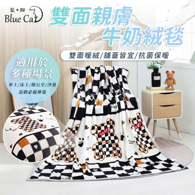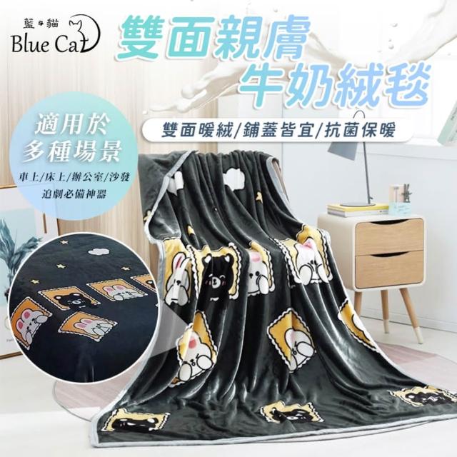Blue Cat 藍貓雙面親膚牛奶絨 法蘭絨保暖被毯 保暖毯 法蘭絨毯 羊羔絨毯 毛毯 毯子