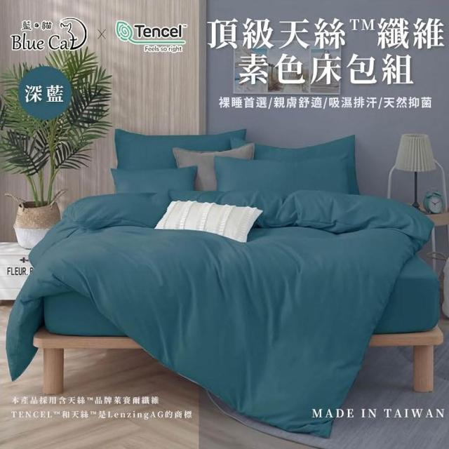 Blue Cat 藍貓天絲™素色兩用被床包枕套組(四件式)-深藍 台灣製造( 素色床包 兩用被 單人/雙人/加大/特大) 入厝禮