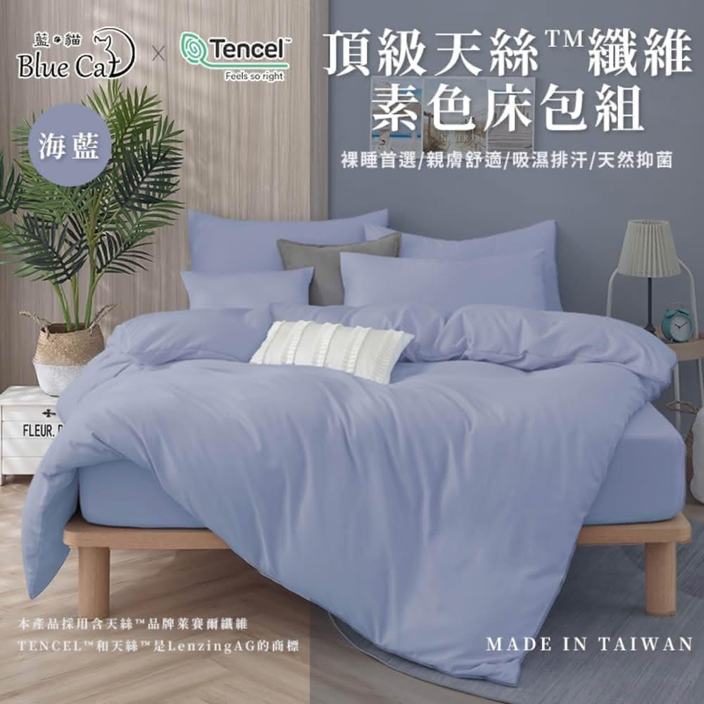 Blue Cat 藍貓(4件組)天絲™素色兩用被四件組-海藍 台灣製造( 素色床包 枕套 單人/雙人/加大/特大) 入厝禮