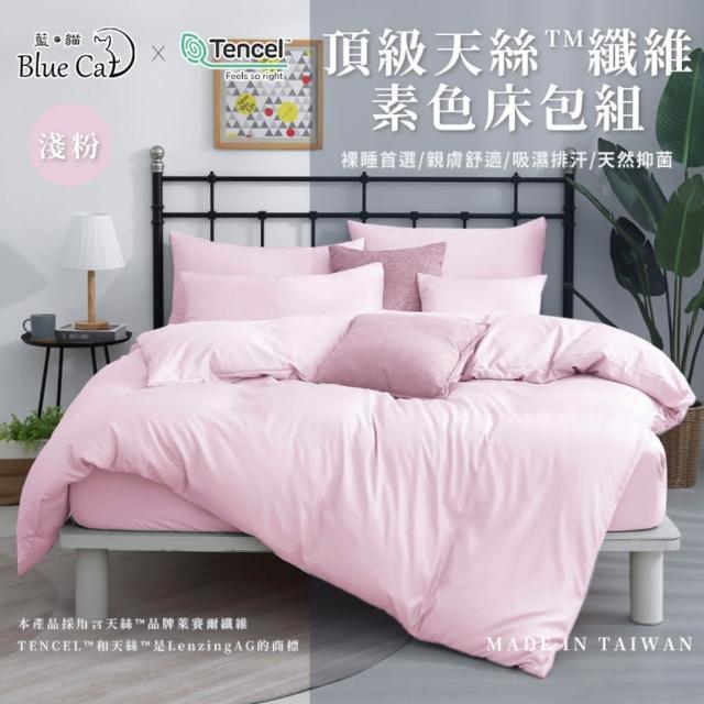 Blue Cat 藍貓天絲™素色兩用被床包枕套組(四件式)-淺粉 台灣製造( 素色床包 兩用被 單人/雙人/加大/特大) 入厝禮