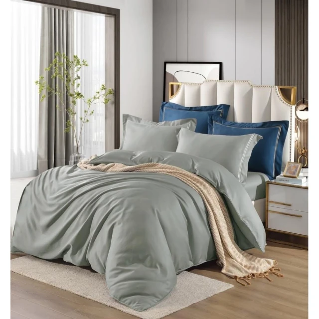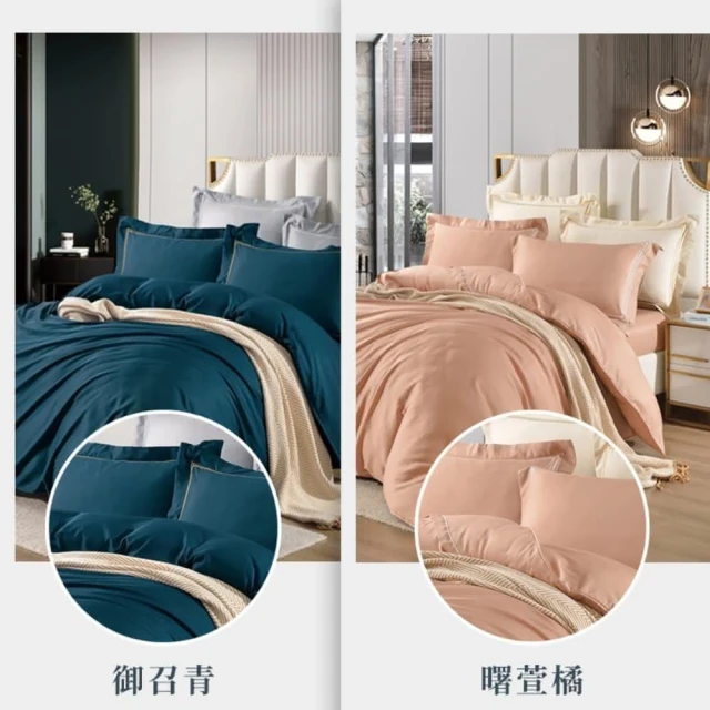 Blue Cat 藍貓頂級天絲刺繡床包兩用被套組/頂級萊賽爾/鋪棉兩用被套/床單(雙人/加大/特大 素色刺繡) 入厝禮