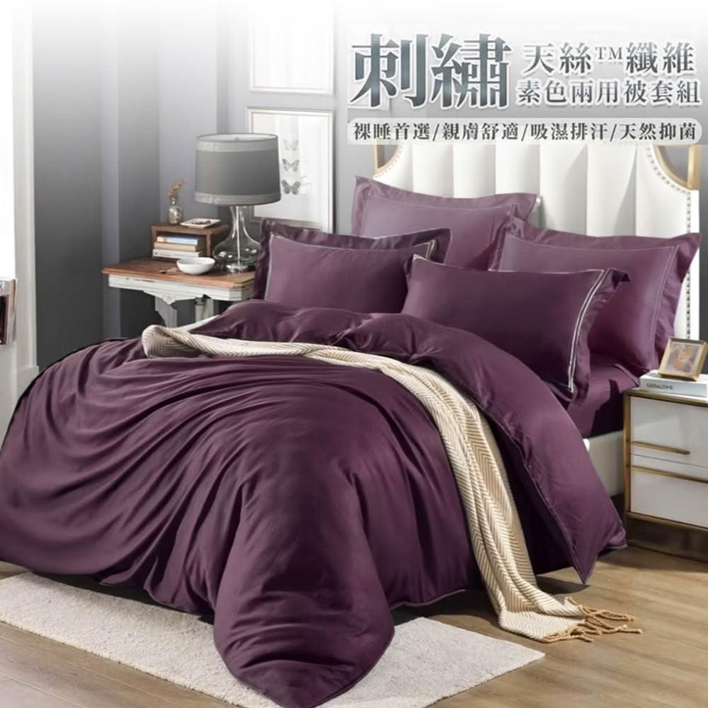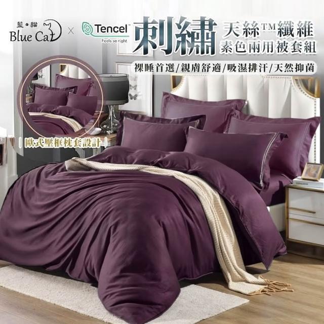 Blue Cat 藍貓頂級天絲刺繡床包兩用被套四件組 (頂級萊賽爾 鋪棉兩用被套床單 (雙人/加大/特大 素色刺繡) 入厝禮