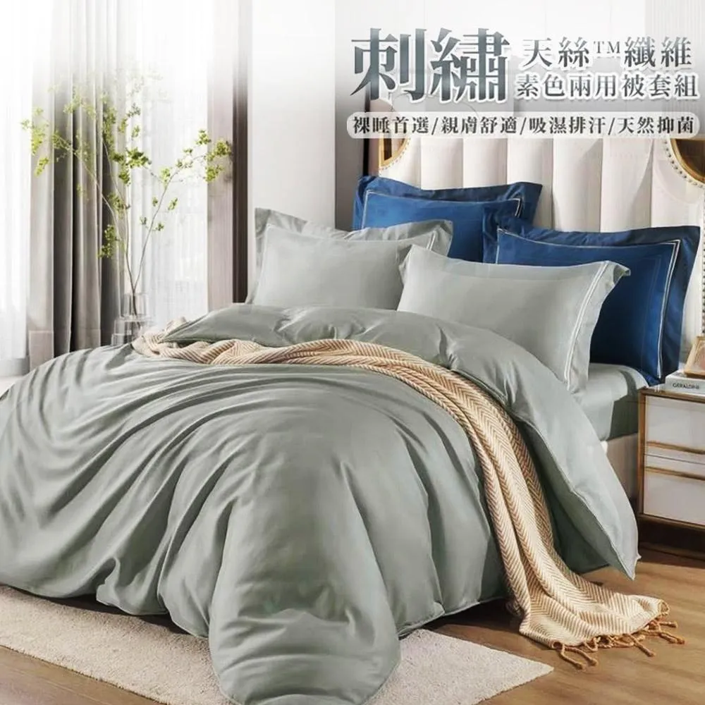 Blue Cat 藍貓頂級天絲刺繡床包兩用被套四件組 (頂級萊賽爾 鋪棉兩用被套 床單 雙人 加大 特大 素色刺繡 入厝禮