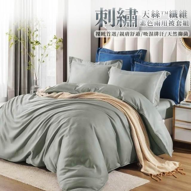 Blue Cat 藍貓頂級天絲刺繡床包兩用被套四件組 (頂級萊賽爾 鋪棉兩用被套 床單 雙人 加大 特大 素色刺繡 入厝禮