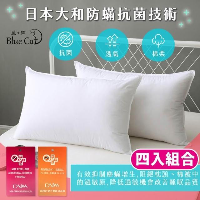Blue Cat 藍貓4入組合 日本大和防螨抗菌枕(枕芯/民宿枕芯/飯店枕芯/羽絲絨枕芯/枕頭)
