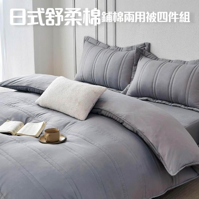 Blue Cat 藍貓(四件組) 日式舒柔棉鋪棉兩用被床包組 單人三件/雙人四件 厚床包 厚床單 鋪棉枕套 棉被 冬被