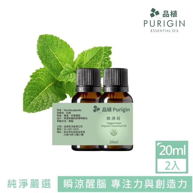 Purigin 品植歐薄荷精油20ml『2入組』歐盟有機(胡椒薄荷/勁涼消暑/專注力與創造力)