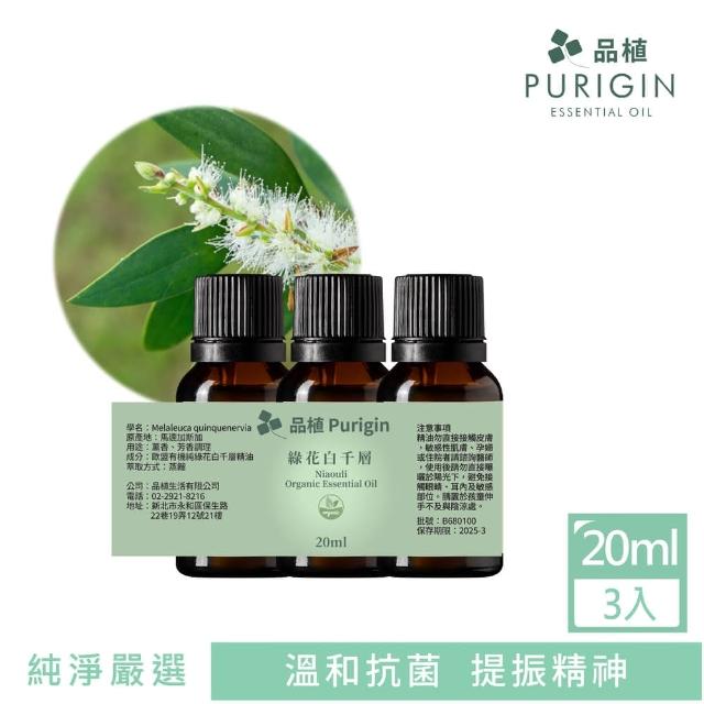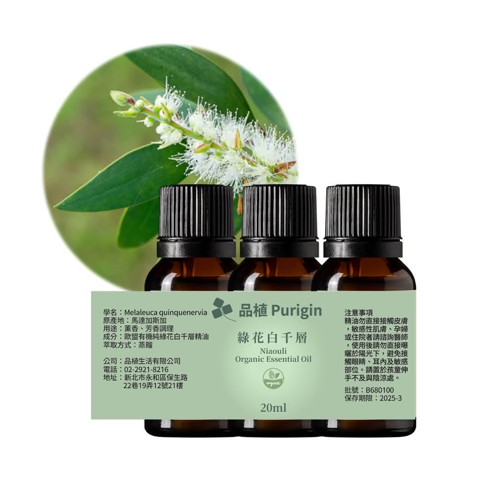 Purigin 品植綠花白千層精油20ml『3入組』歐盟有機(神清氣爽/溫和親膚)