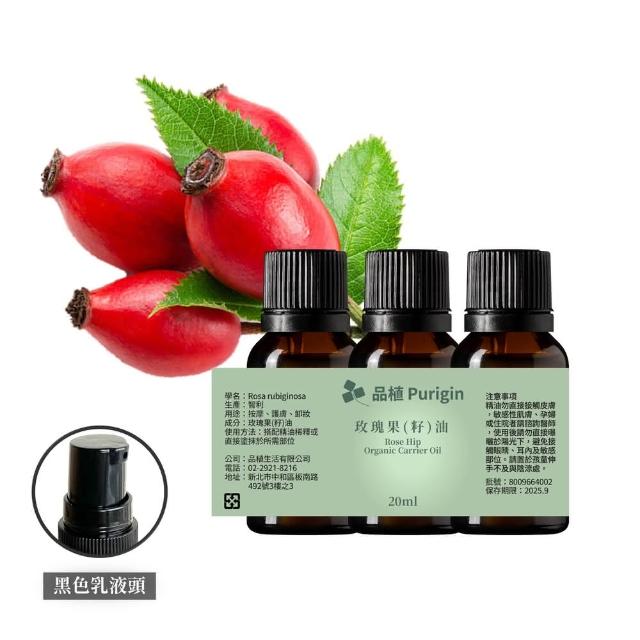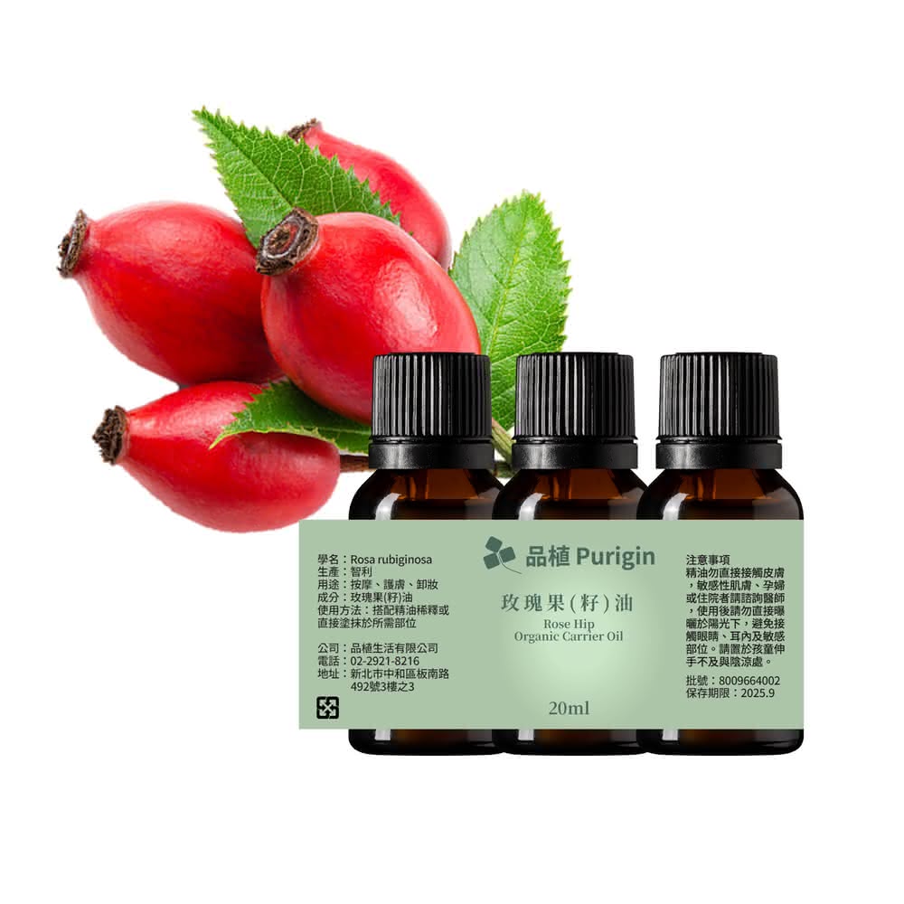Purigin 品植玫瑰果籽油 基底油/植物油20ml-3入組_歐盟有機(滋潤肌膚/均勻全身膚色)