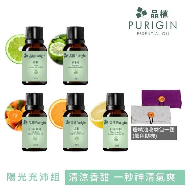 Purigin 品植陽光充沛香氛組|純精油5入|附精油收納包|歐盟有機精油(神清氣爽/香甜馥郁/解憂解勞)