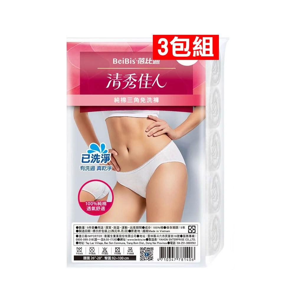 清秀佳人100% 純棉 三角免洗褲 M-XXL 3包組 (中腰 純棉 女性免洗內褲)