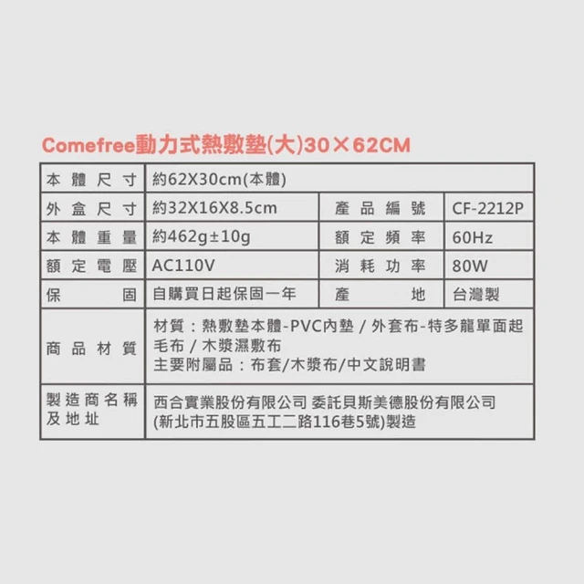 Comefree乾濕兩用 熱敷墊 -大30×62cm CF2212(熱敷墊)