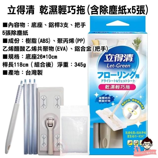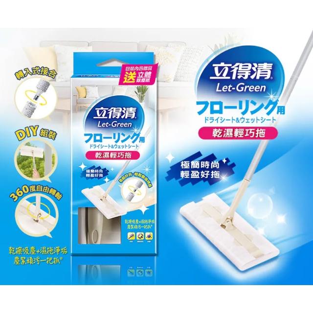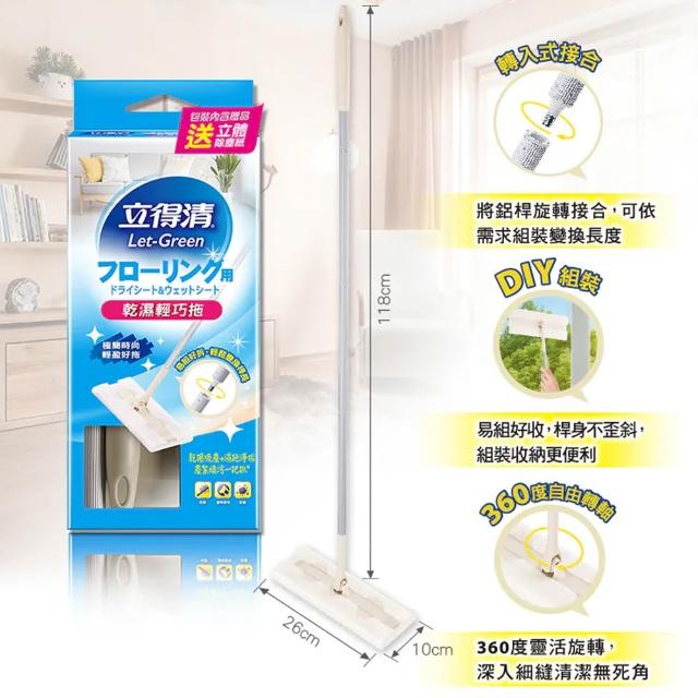 立得清 乾濕兩用輕巧360度旋轉拖-內含贈品立體除塵紙5張(1支) ( 平板拖 除塵拖把 靜電拖把 平板拖把 )
