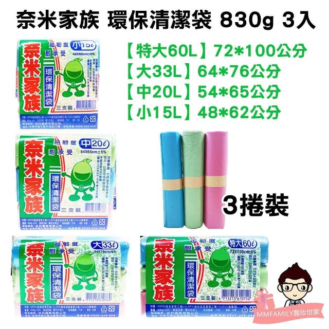 奈米家族 環保垃圾袋 650g 環保清潔袋 830g 3支裝 ( 台灣製 可分解 垃圾袋 超韌度 耐承重 )