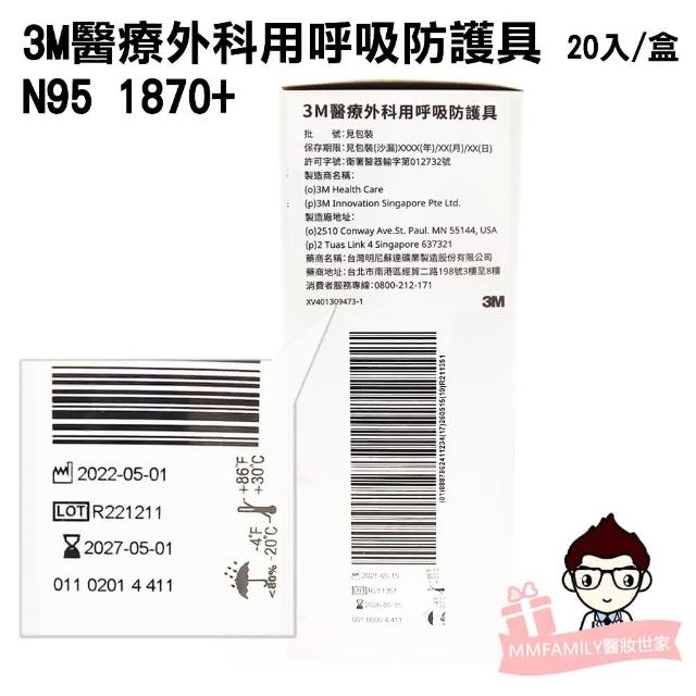 3M 1870+ 醫療外科用呼吸防護具 N95 20入/盒 ( 口罩 N95 1870+ )