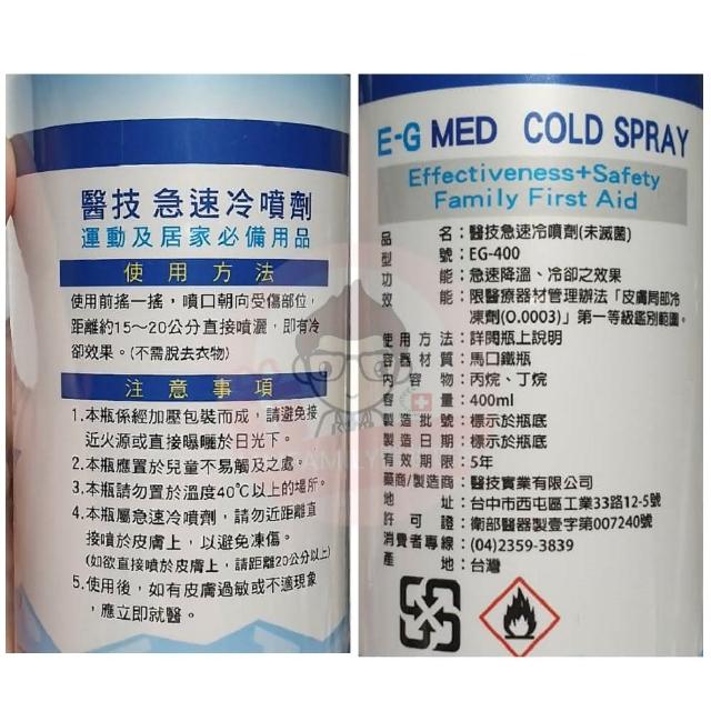 E-GMED 醫技急速冷噴劑 EG-400 400ml/罐 (冷凍噴劑 冷卻噴劑 冷凍劑 運動後噴劑 極速冷卻 )