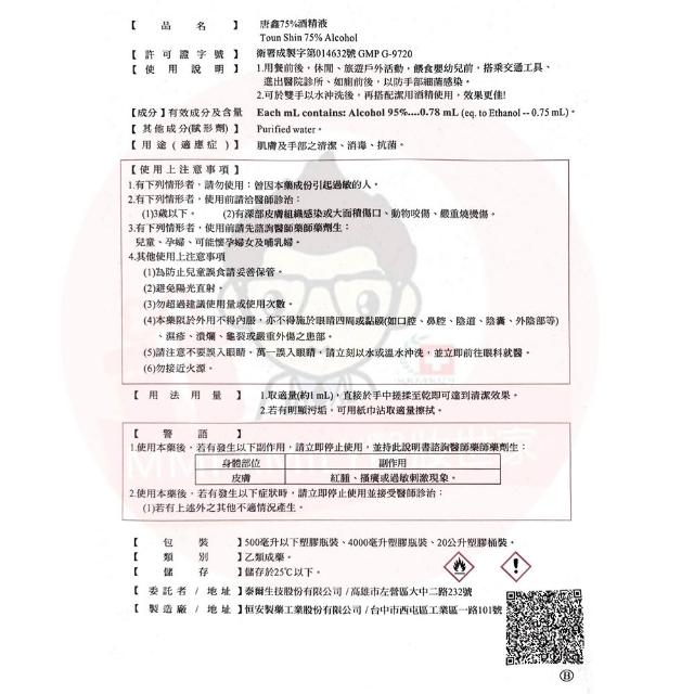 醫強 唐鑫 75%酒精 99ml 隨身瓶 (乙類成藥)