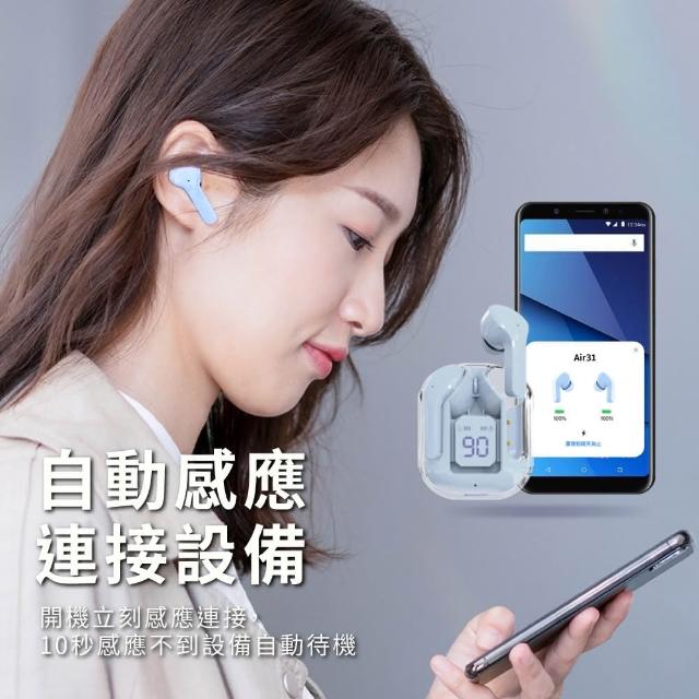AIR31 數顯無線藍芽耳機(ENC通話降噪 電量顯示 藍牙5.3 智能觸控 持久續航 透明款藍牙耳機)