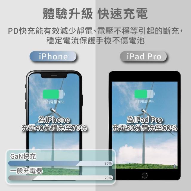 65W氮化鎵充電頭(充電器 PD快充 QC3.0 快速充電 GaN 多口 三口 USB Type-C)