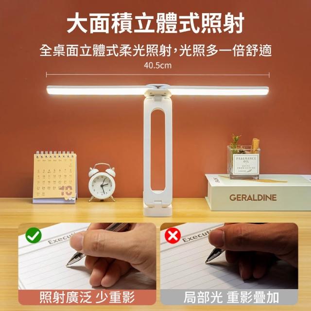 插電款 LED雙頭折疊護眼檯燈(可調色溫 折疊收納 LED 充插兩用 三色調光 雙頭檯燈 護眼檯燈)