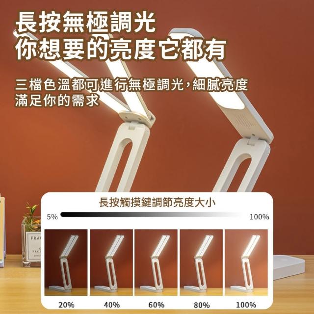 插電款 LED雙頭折疊護眼檯燈(可調色溫 折疊收納 LED 充插兩用 三色調光 雙頭檯燈 護眼檯燈)