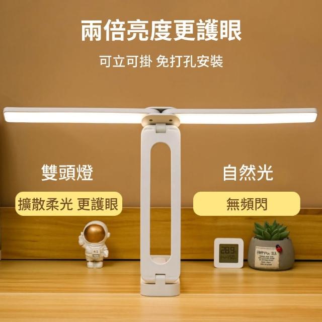 插電款 LED雙頭折疊護眼檯燈(可調色溫 折疊收納 LED 充插兩用 三色調光 雙頭檯燈 護眼檯燈)