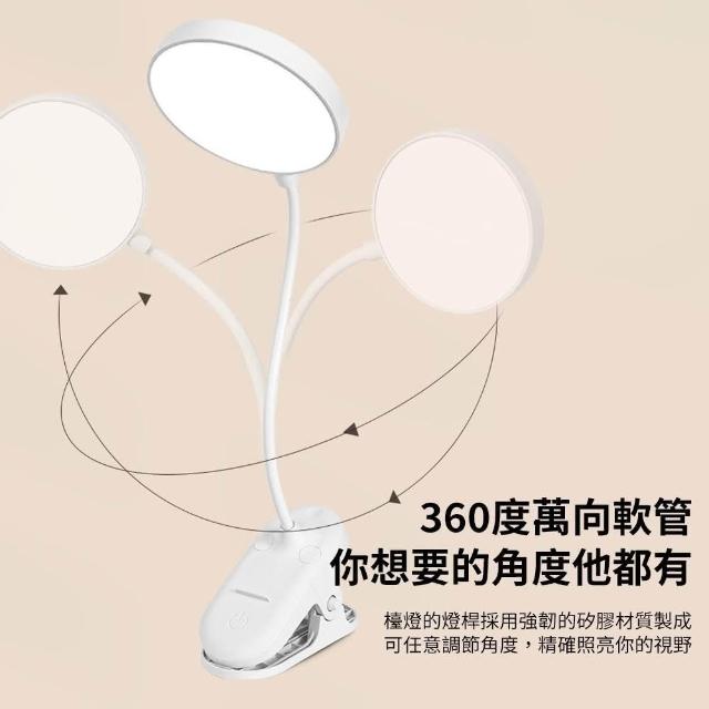 DTAudioLED夾子式護眼檯燈 充電款(一鍵觸控 三段調光 多向彎曲 充電檯燈 夾 子 燈 LED檯燈 閱讀燈)