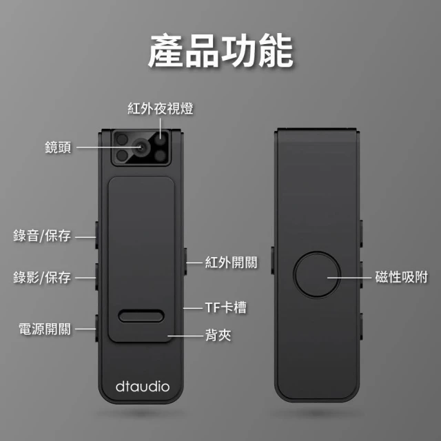 DTAudio領夾式微型攝影機(循環錄影 獨立錄音錄影 隱藏鏡頭130°廣角 磁吸 背夾)