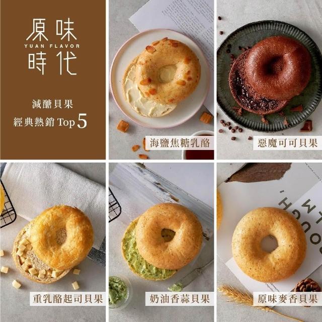 原味時代經典推薦│綜合減醣貝果10入組(重乳酪起司/惡魔可可/海鹽焦糖/奶油香蒜/原味麥香)