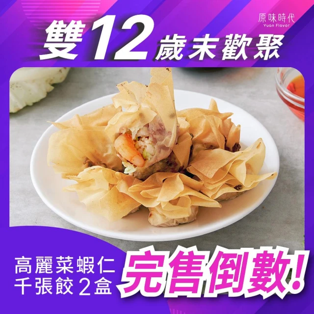 原味時代減醣輕卡-高麗菜蝦仁千張餃-2盒組(12顆/盒)
