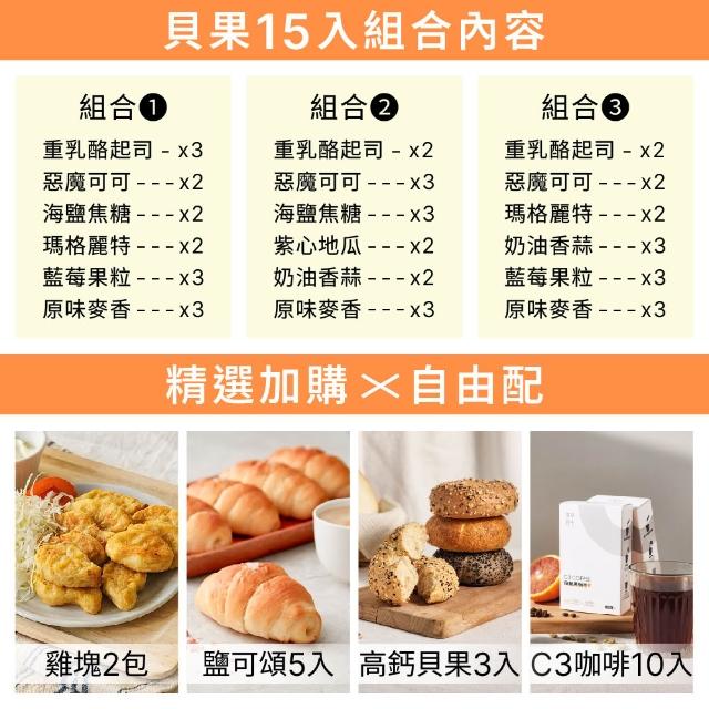 原味時代momo獨家|減醣夾餡貝果15入組(重乳酪/惡魔可可/海鹽焦糖/瑪格麗特/紫心地瓜/藍莓果粒)