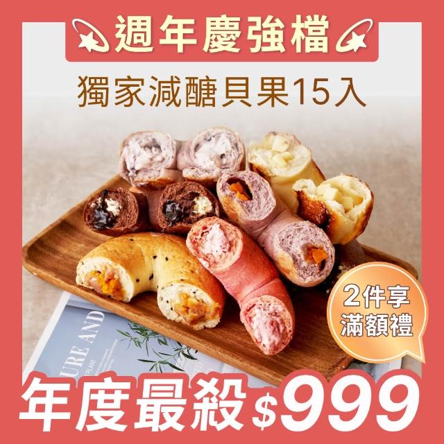 原味時代momo獨家|減醣夾餡貝果15入組(重乳酪/惡魔可可/海鹽焦糖/瑪格麗特/紫心地瓜/藍莓果粒)